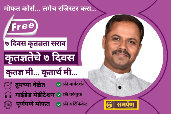 मराठीत प्रथमच पूर्ण व्यावसायिक कृतज्ञता मिनी-कार्यशाळा पूर्णपणे मोफत. कृपया व्हिडिओ पहा, सांगितल्याप्रमाणे सर्व कृती करा. काही सेकंद वेळ काढून हा मोफत व्हिडिओ कोर्स तुमच्या जवळच्या नातेवाईकआणि प्रियजनांना आठवणीने फॉरवर्ड करा. त्यांचेही जीवन बदलू द्या.